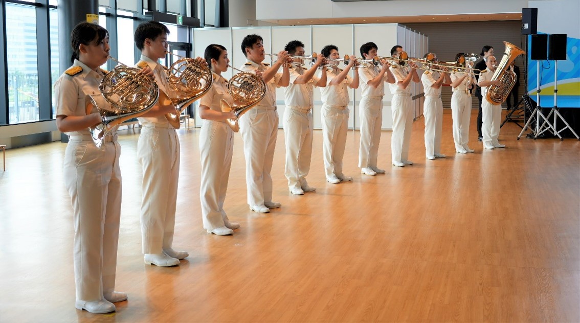 令和6年7月15日(月曜・祝日)、東京国際クルーズターミナル(東京都江東区)において「海の日プロジェクトin青海」が開催され、海上保安庁音楽隊は、オープニングセレモニーにて金管によるファンファーレ演奏及び「海の日」コンサートを行いました。