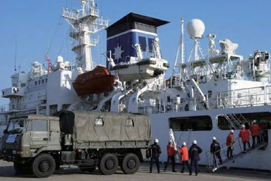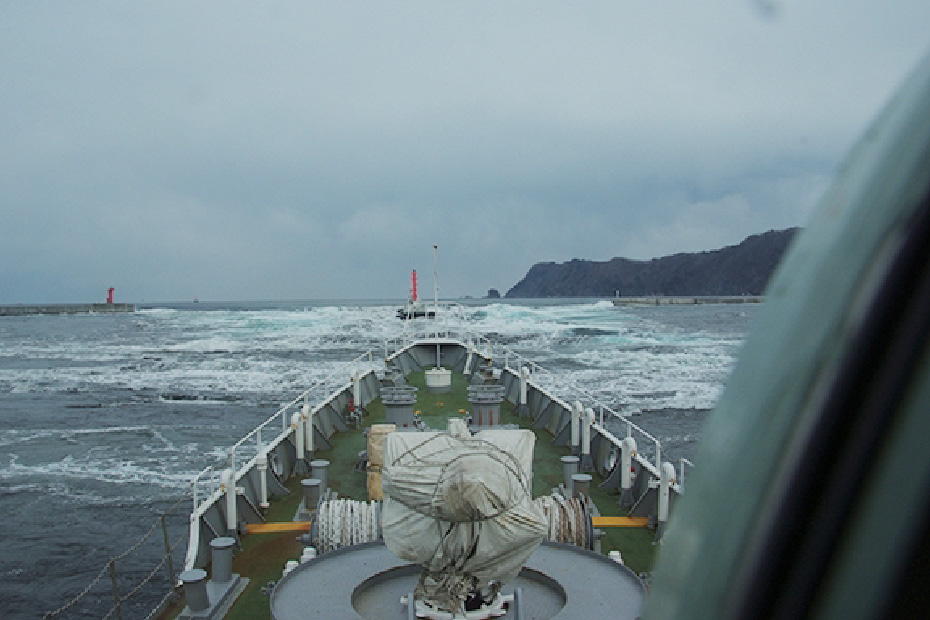 The patrol craft "Kitakami" making an emergency exit from port while as tsunami hits(Kamaishi Port, Miyagi Prefecture)