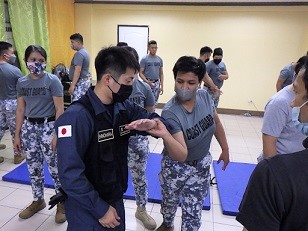 This time JCG conducted training on arresting techniques to 62 trainees including 14 instructors and the crew of a 97-meter patrol vessel provided by the Japanese government in 2021, at the base near Manila, while USCG conducted the "Boarding Officer Instructor Development Course".