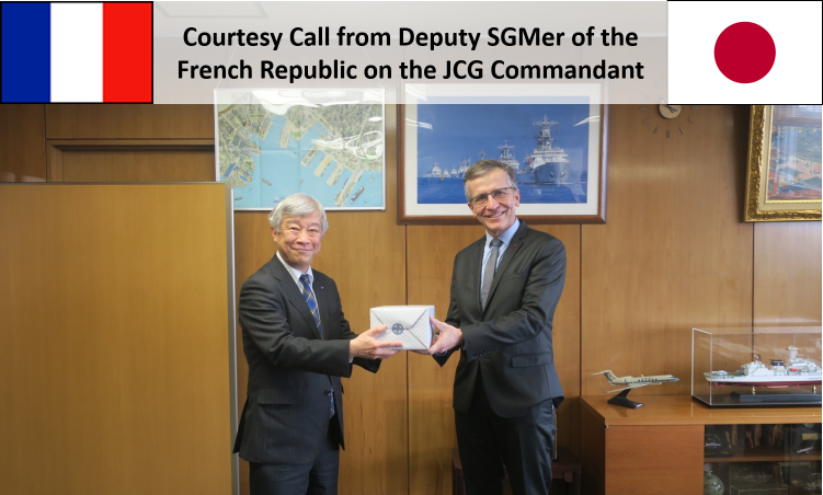 In February 3, the Commandant ISHII received a courtesy call from Rear Admiral De GUIBERT, Deputy Secretary General for the Sea(SGMer) of French Republic and confirmed strengthening future cooperation.