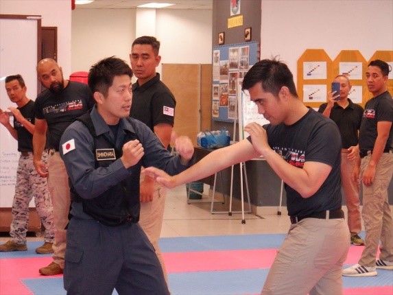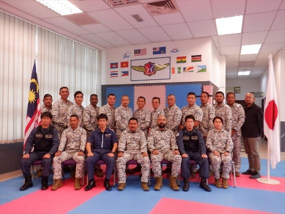 The MCT provided brush-up training on arresting techniques for 16 MMEA personnel, including six past instructor course participants trained in Japan.
