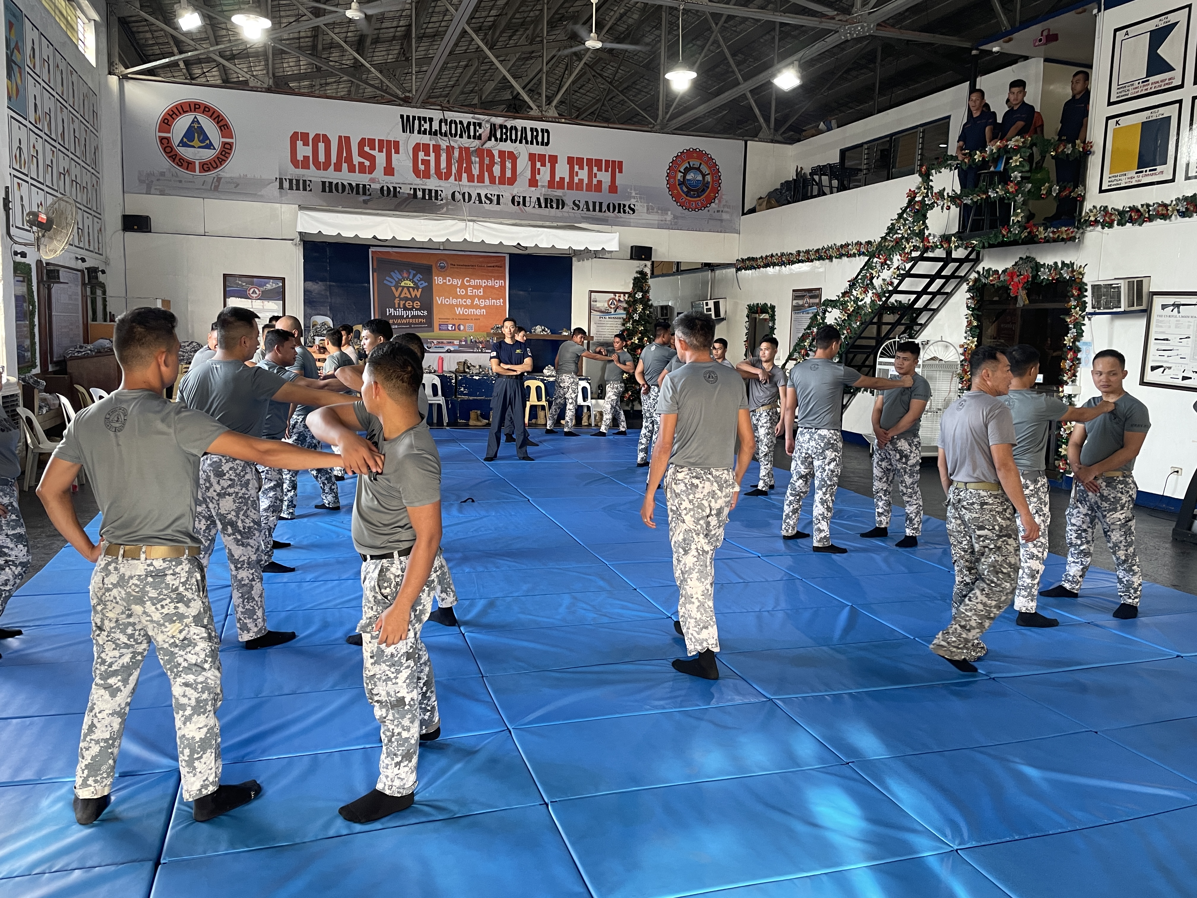 In the Philippines, The MCT conducted Towing Operation using PCG patrol vessel MRRV-9701, MRRV-4402 and MRRV-4403 which provided by Japan to the PCG and patrol craft DF-312. In addition, "Small boat operation", "Emergency steering drills", "Fire fighting", "Arresting techniques" and "Lecture on Safety Navigation" were conducted for PCG patrol vessel crews and training instructors.