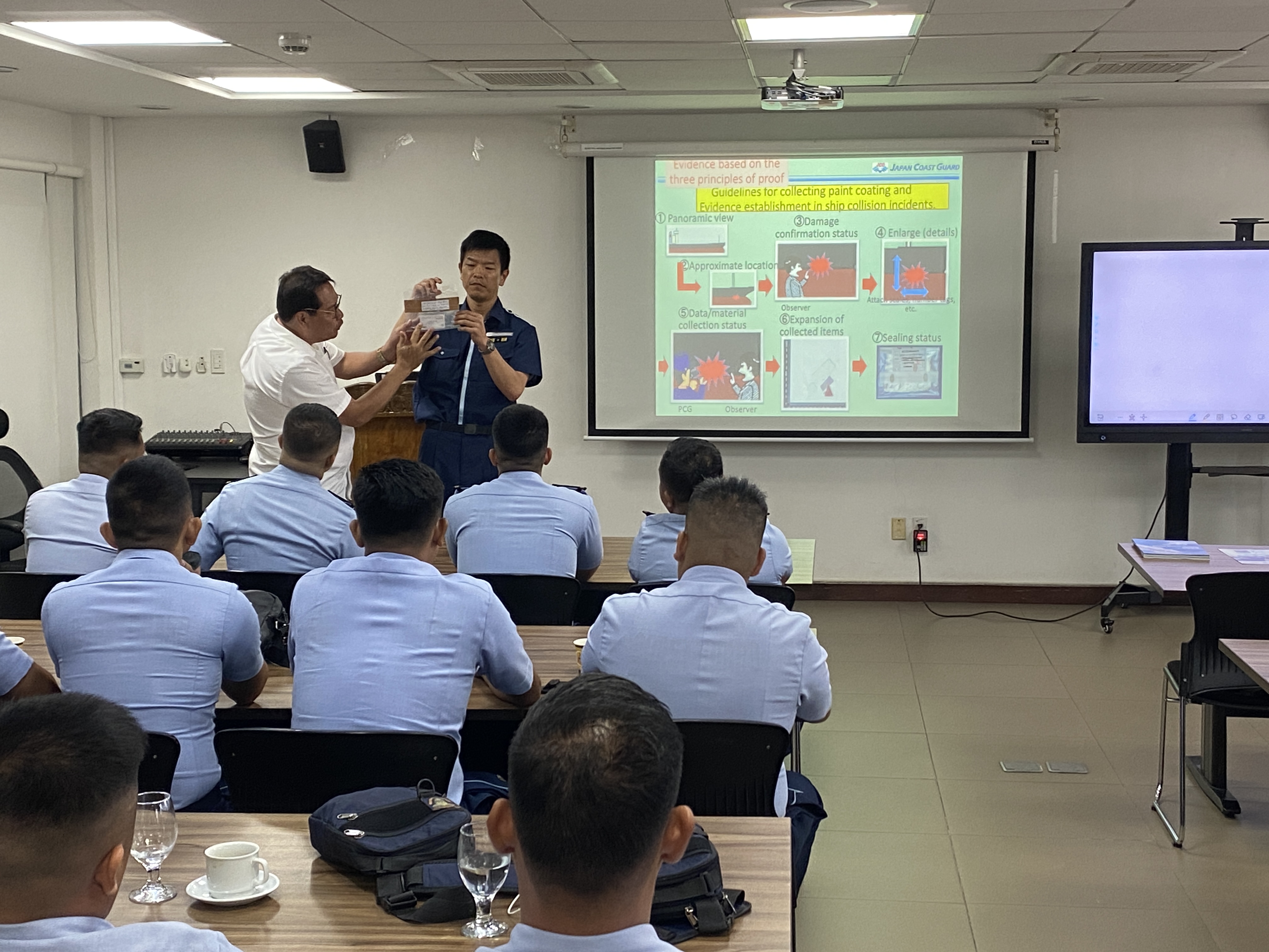 The Japan Coast Guard (JCG) dispatched two members of its Mobile Cooperation Team (MCT), a special team that provides foreign coast guard agencies with capacity building on maritime safety and security, one officer of Criminal Investigation Division, two crews of patrol vessel KIKUCHI and one instructor of Moji branch of JCG school to the Philippines from 18 Feb. to 8 March. 2024, with the cooperation of the Japan International Cooperation Agency (JICA). We provide technical support to the Philippine Coast Guard (PCG).