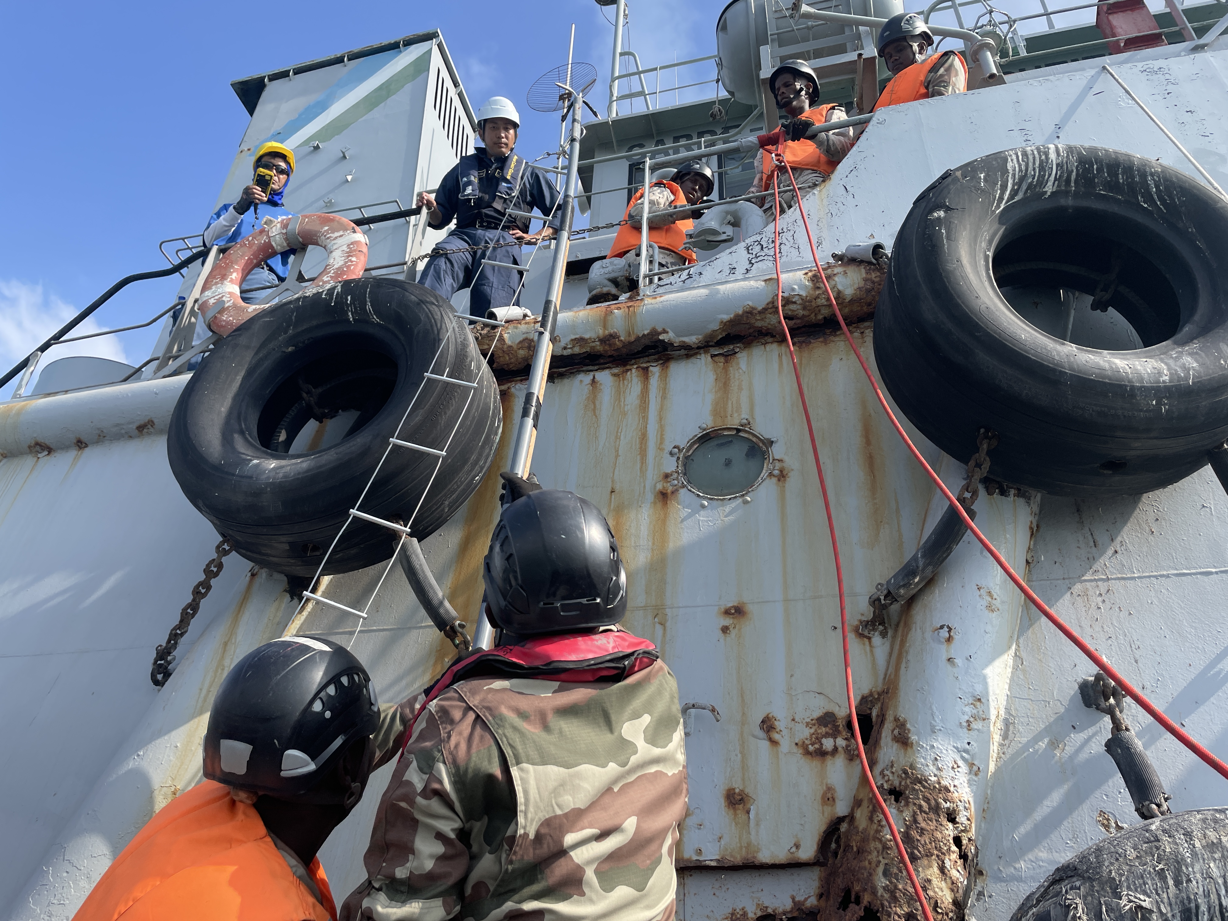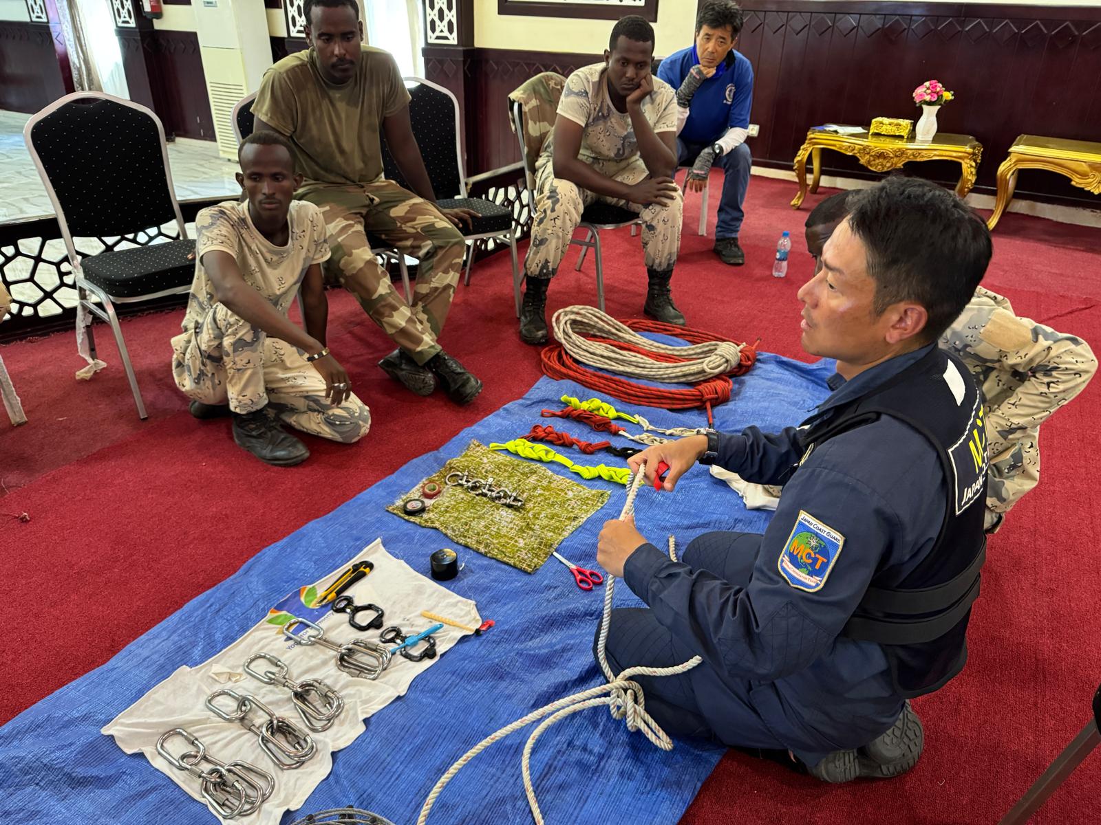 The MCT conducted capacity building support on maritime safety and security to the Djibouti Coast Guard (DCG). We confirmed the boarding trainings by DCG itself using the DCG's Land facility and boat, and their instruction capability of instructor candidates, and we also provided advice on teaching methods. And we provided instruction and advice on the stoppage and pursuit training.