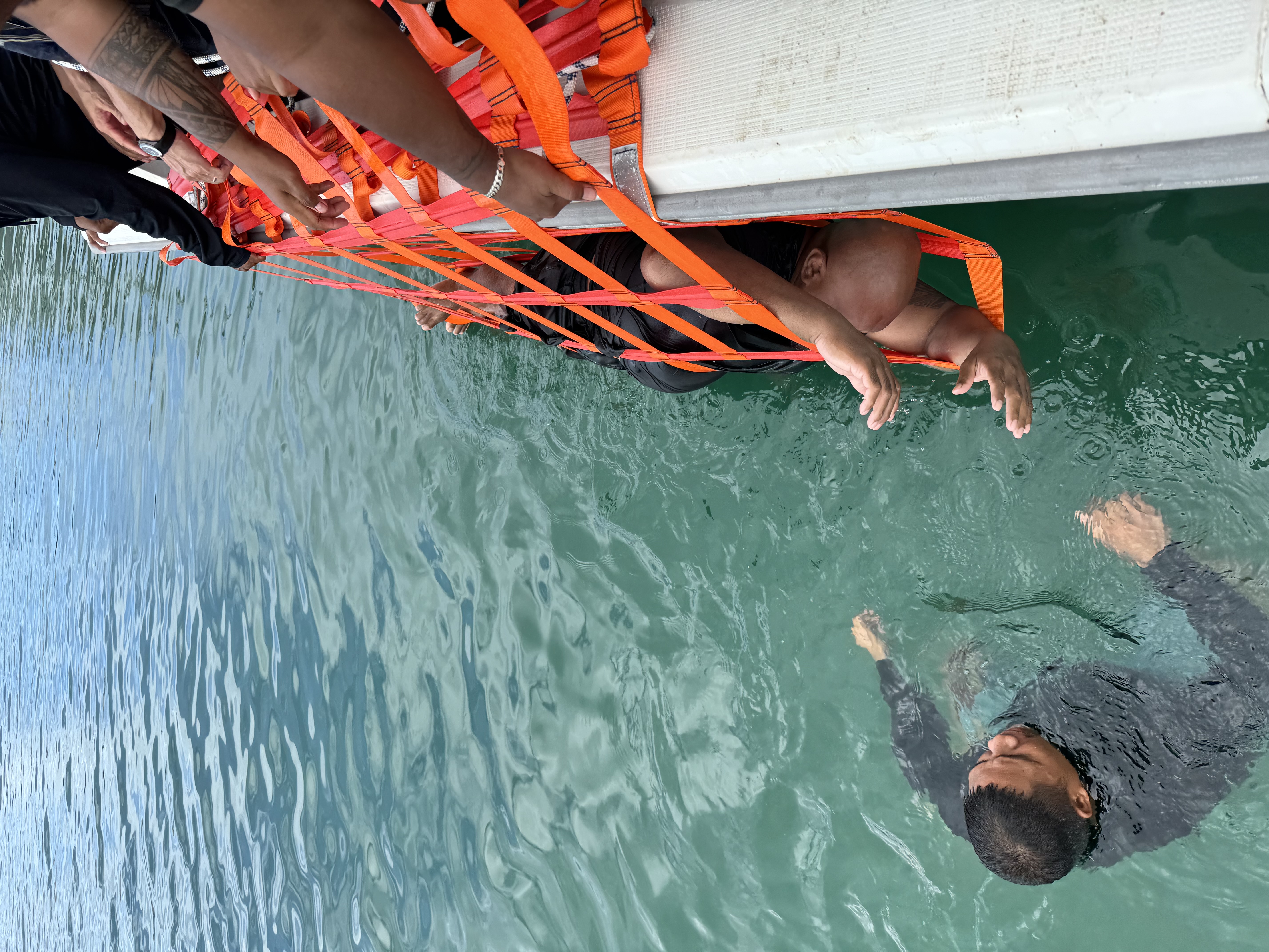MCT provided training on rescuing rifting persons at sea using maritime rescue equipment (Fiber Light Cradle) adopted by the Japan Coast Guard, contributing to the enhancement of the FSM coast guard