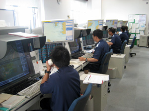 これまで、港内の管制水路においては、船舶交通の安全確保を図るため、信号により一定トン数以上の船舶について一律に行き会いを禁止する管制を実施してきました。 しかし、AISの活用により、船舶の動静をリアルタイムに把握できるようになったことから、行き会い可能な船舶を個別に判断し、管制水路を航行する船舶の長さに応じた交通整理を実施するための港内管制システムを順次導入しています。 平成22年度は、京浜港横浜区、京浜港東京区、千葉港及び鹿島港で運用を開始しました。