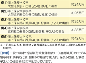 海上保安官の給与は、一般職の国家公務員の給与に関する法律等の法令の定めに従い支給されています。