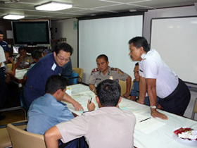外国人の犯罪捜査に必要な語学能力を修得するための研修です。ロシア語、中国語、韓国語があり、研修員は現場の海上保安官の希望と適性より選抜され、1年間、海上保安大学校で研修を受けます。研修修了後は、国際捜査官として活躍し、さらに上位の研修を受けて能力アップしていきます。