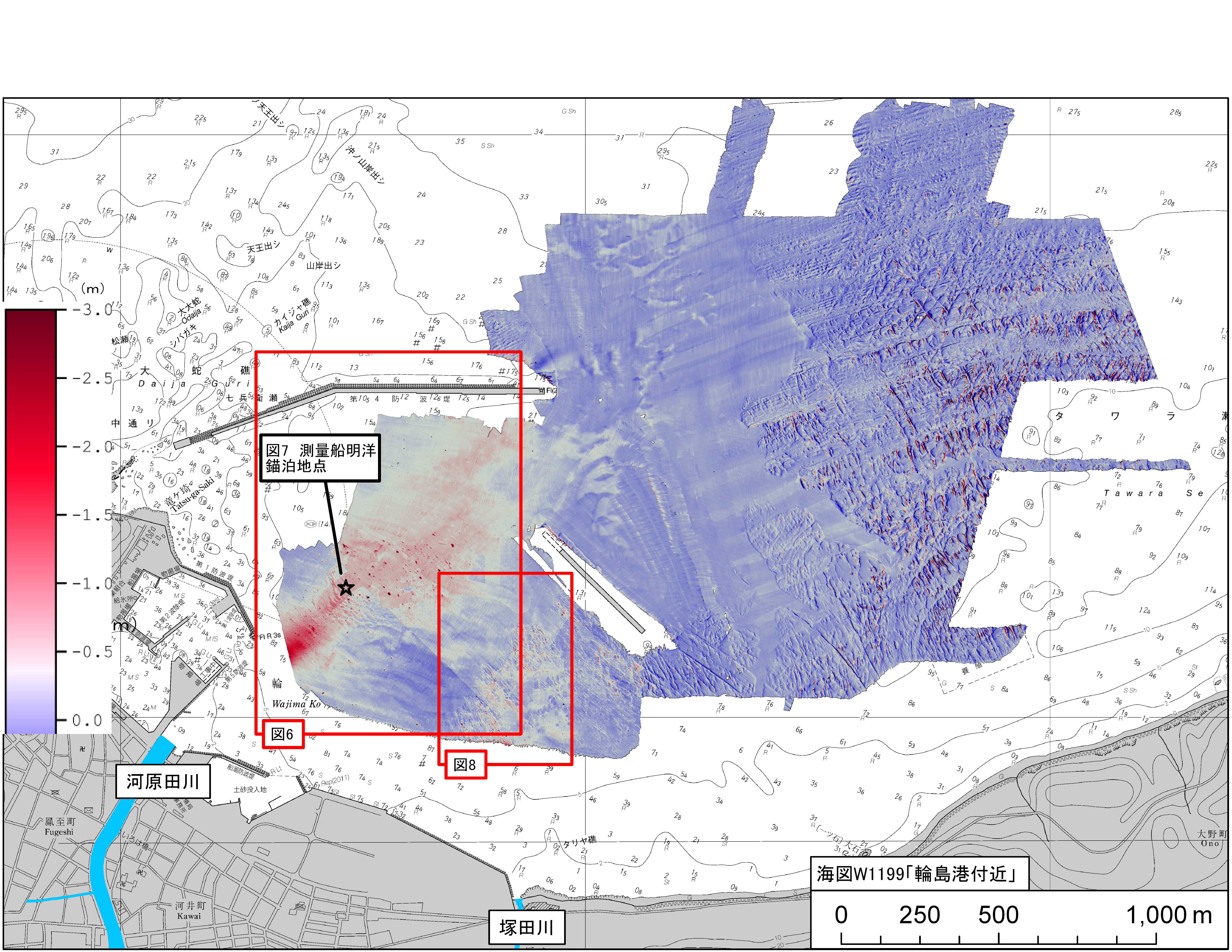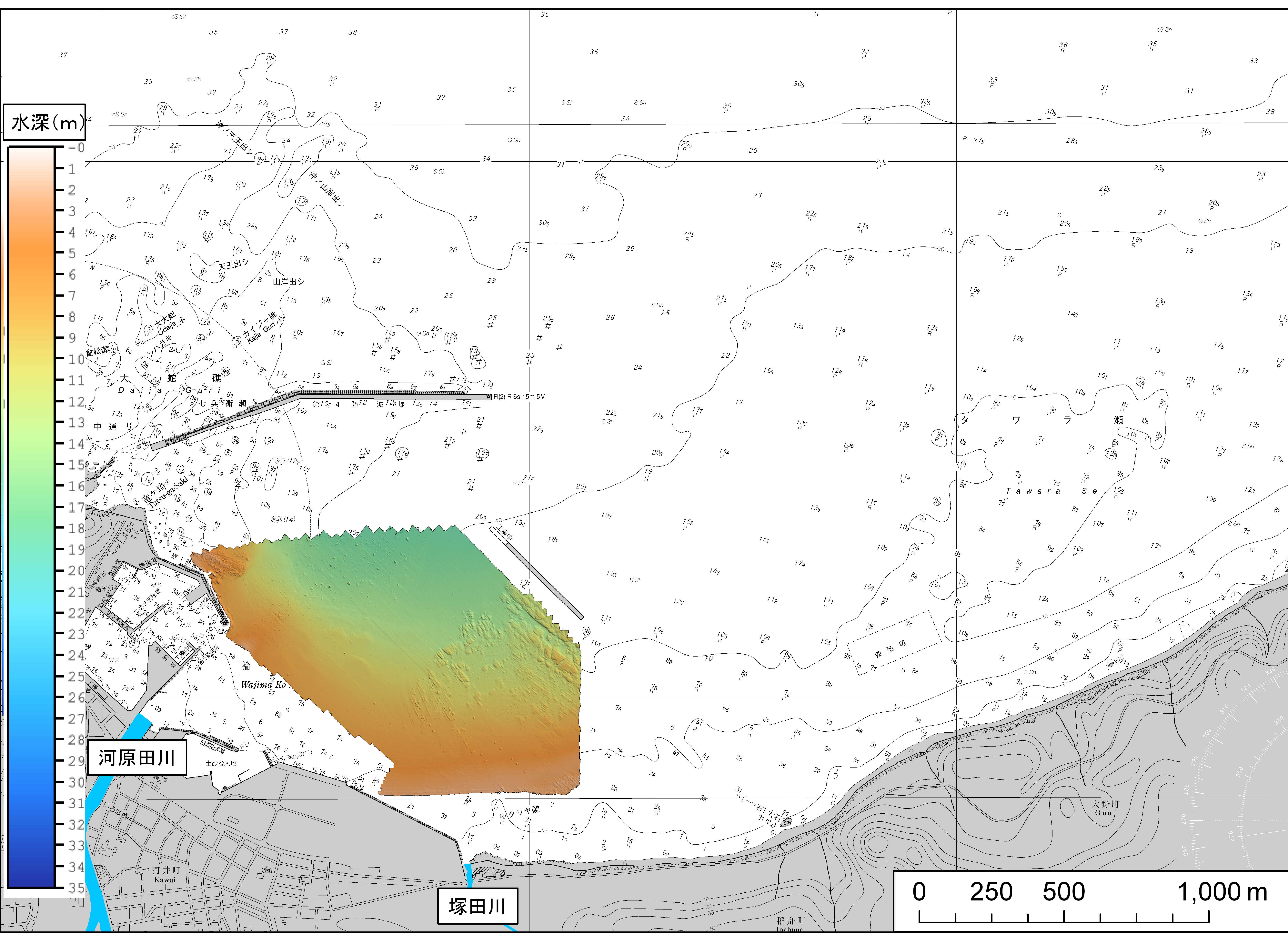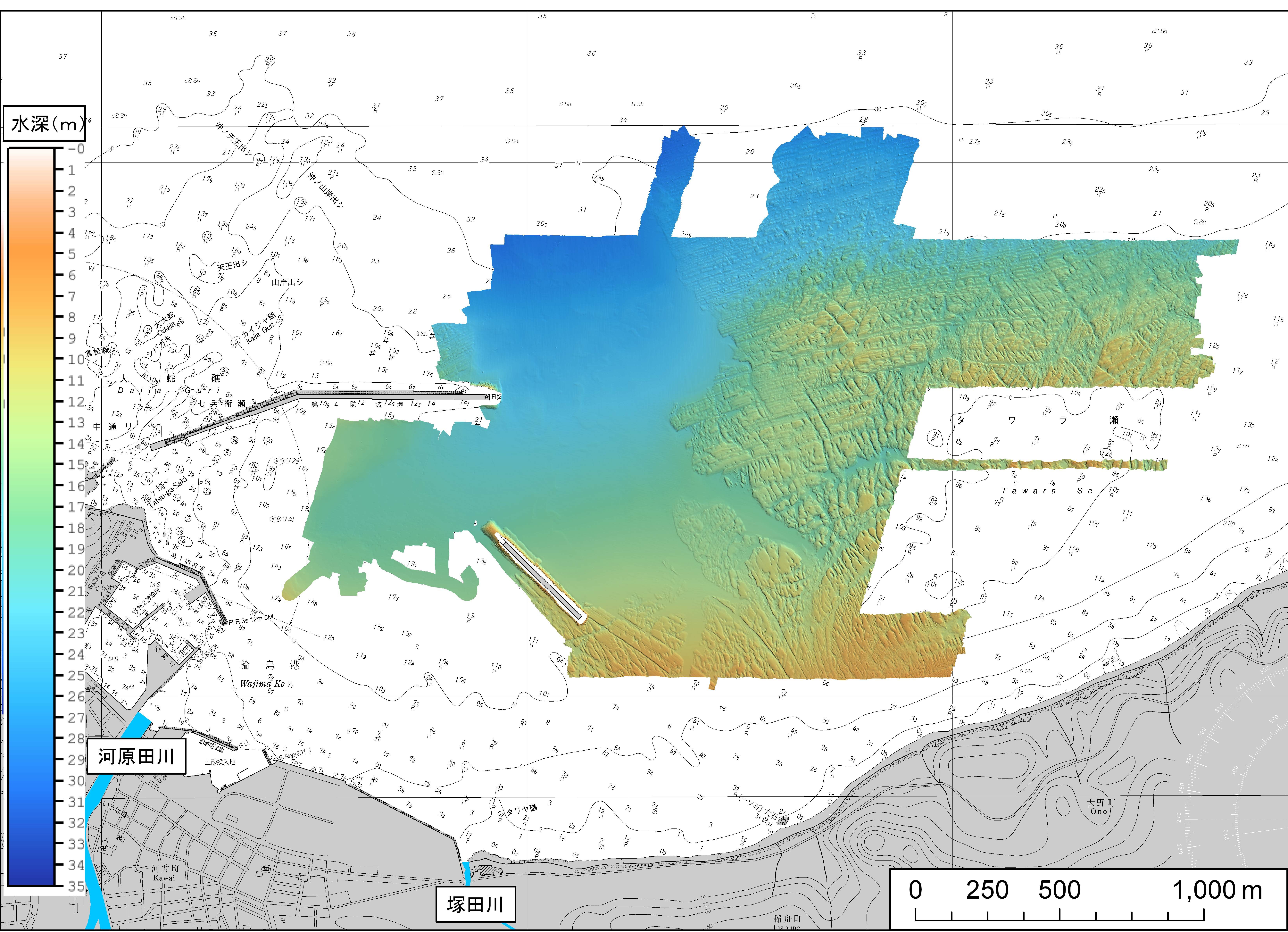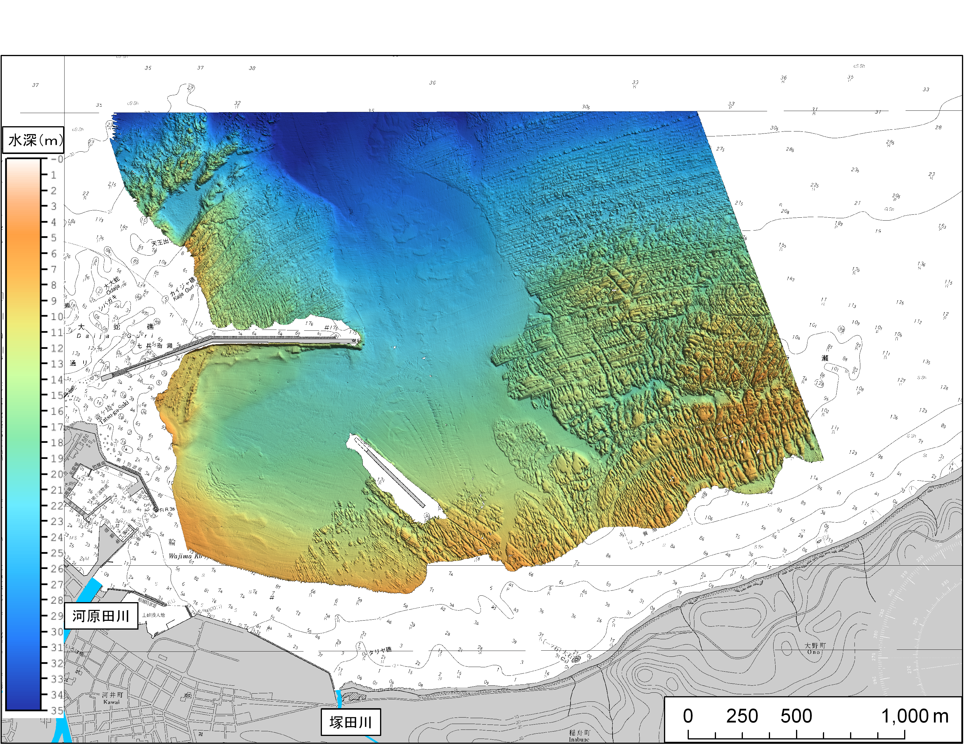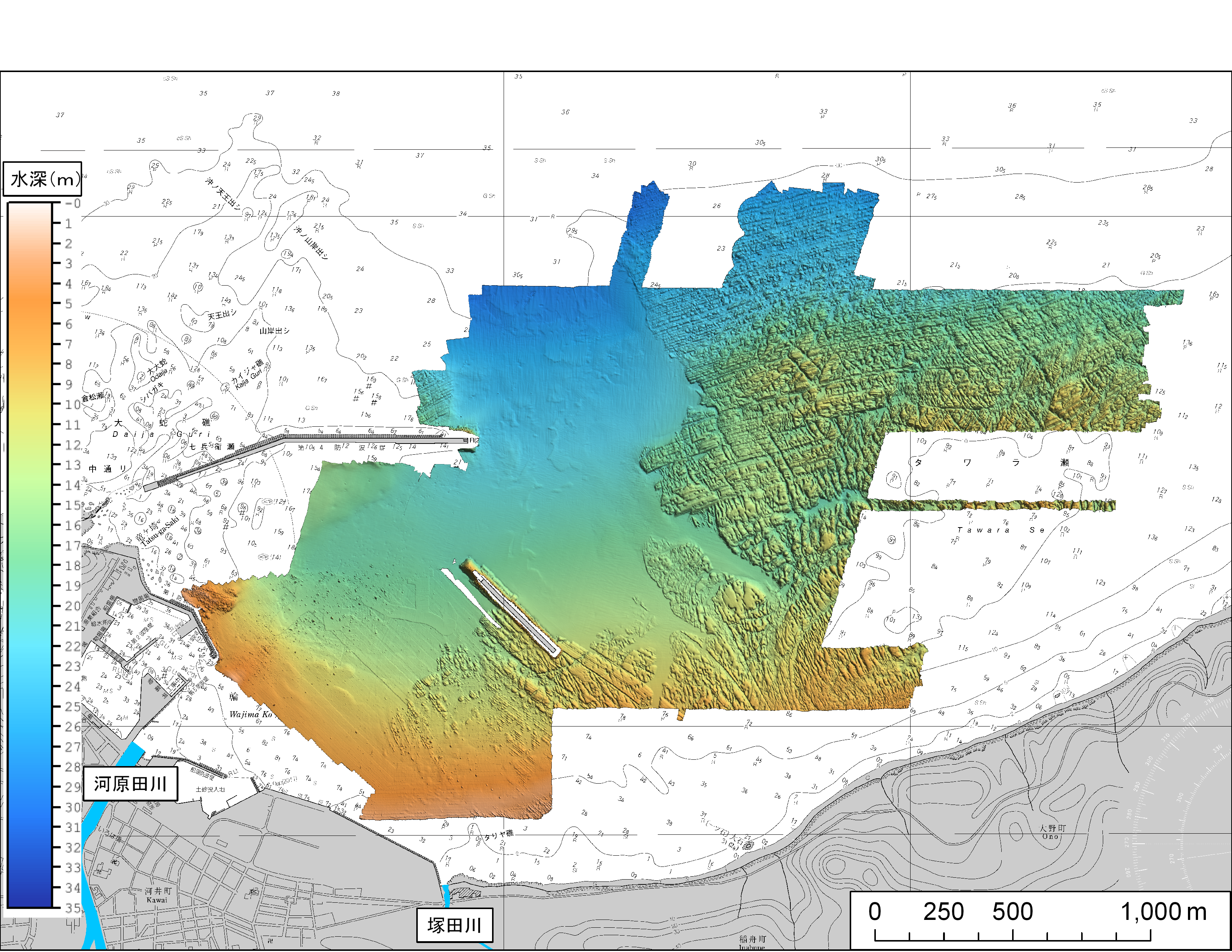 図1 令和7年5月(豪雨の約8カ月後)に当庁が取得した海底地形図