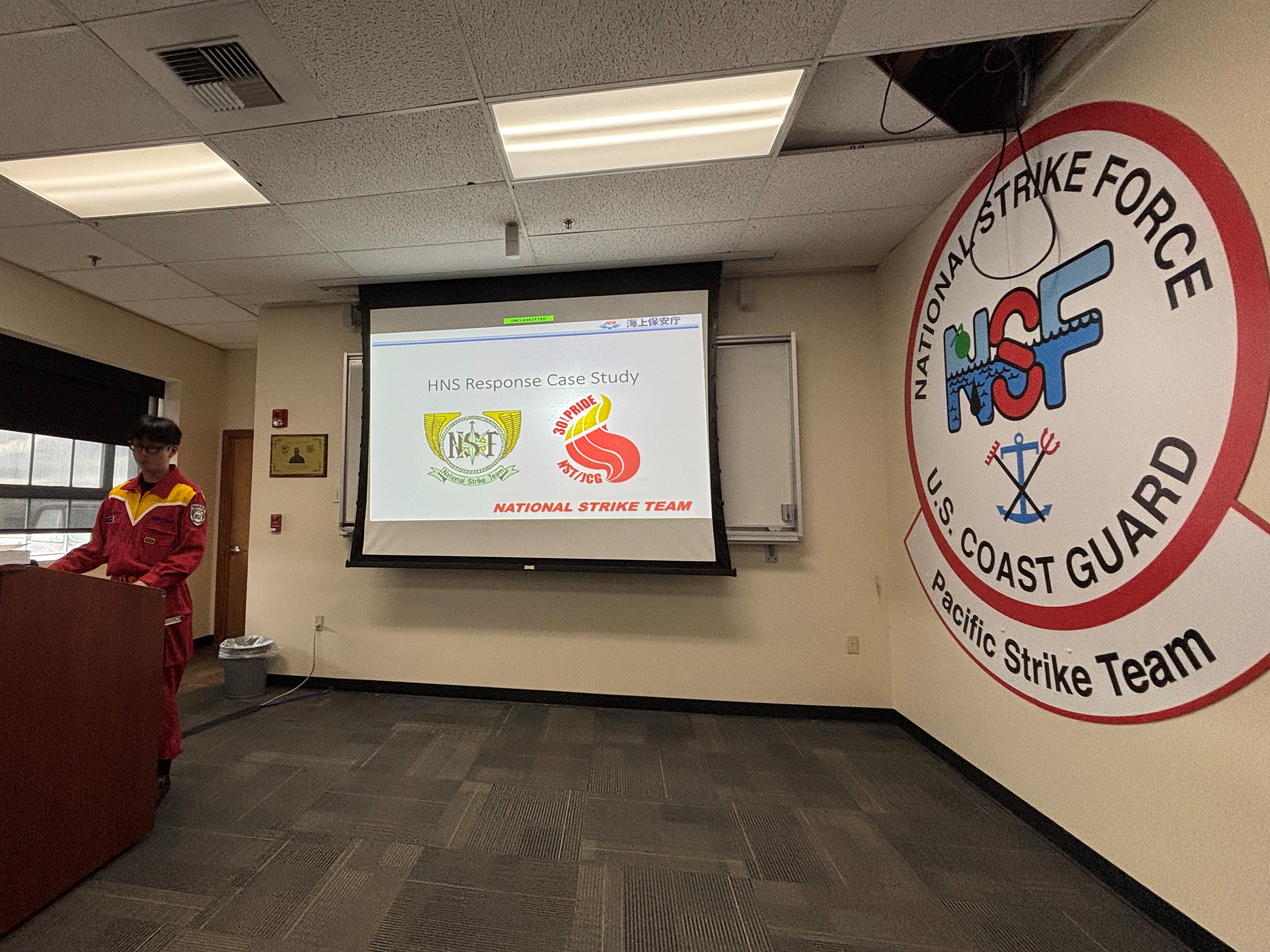 日米海上保安機関の相互理解や連携協力を促進すべく、海上保安庁の機動防除隊は、米国沿岸警備隊における海上災害対応の専門部隊であるナショナル・ストライク・フォース(NSF)の基地等を訪問し、令和7年11月19日(水曜)から21日(金曜)にかけて環境防災分野に関する意見交換や、両部隊間で初となる合同訓練等を実施しました。