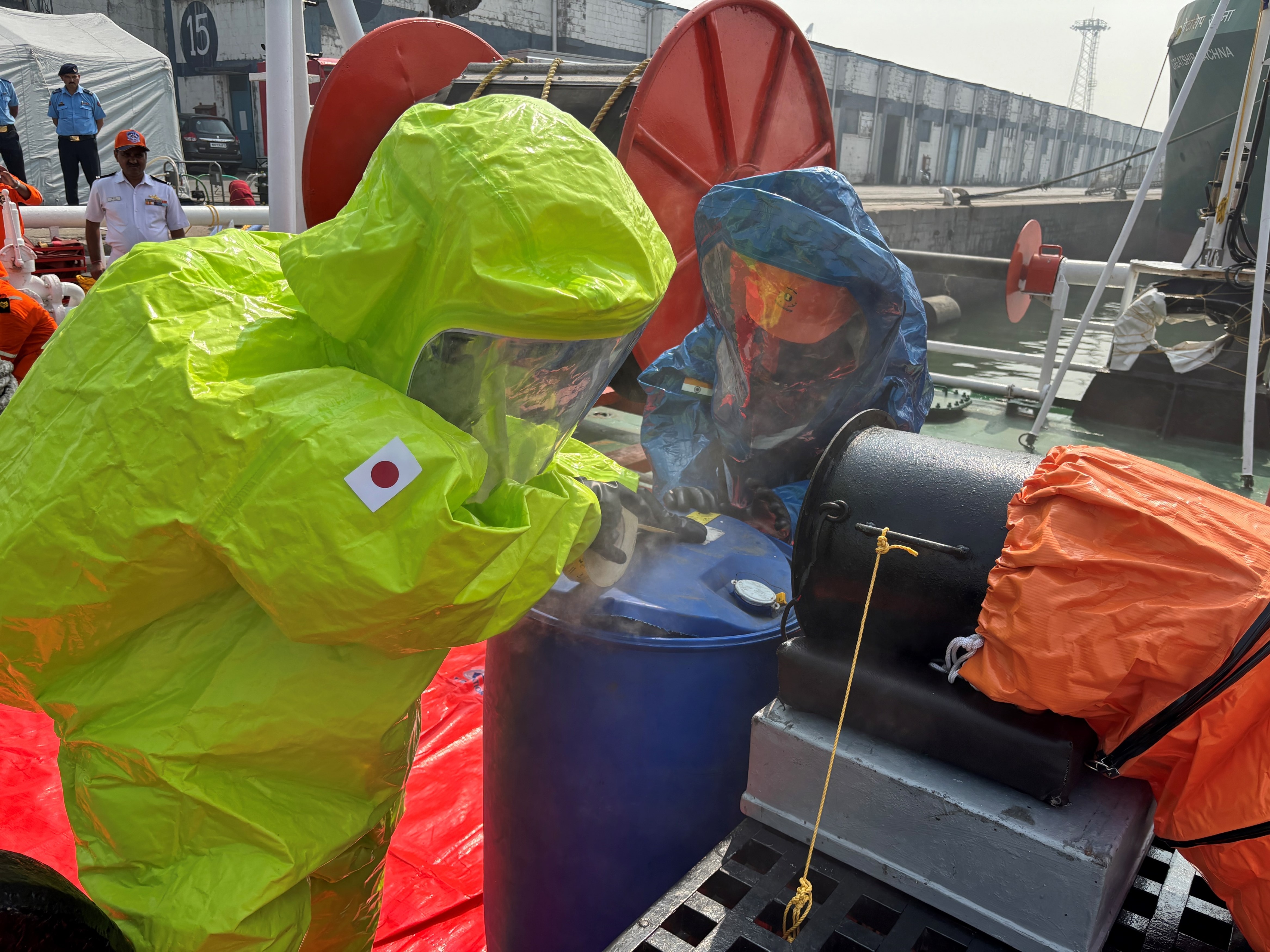 インド沿岸警備隊及び機動防除隊による 危険・有害物質の連携訓練③