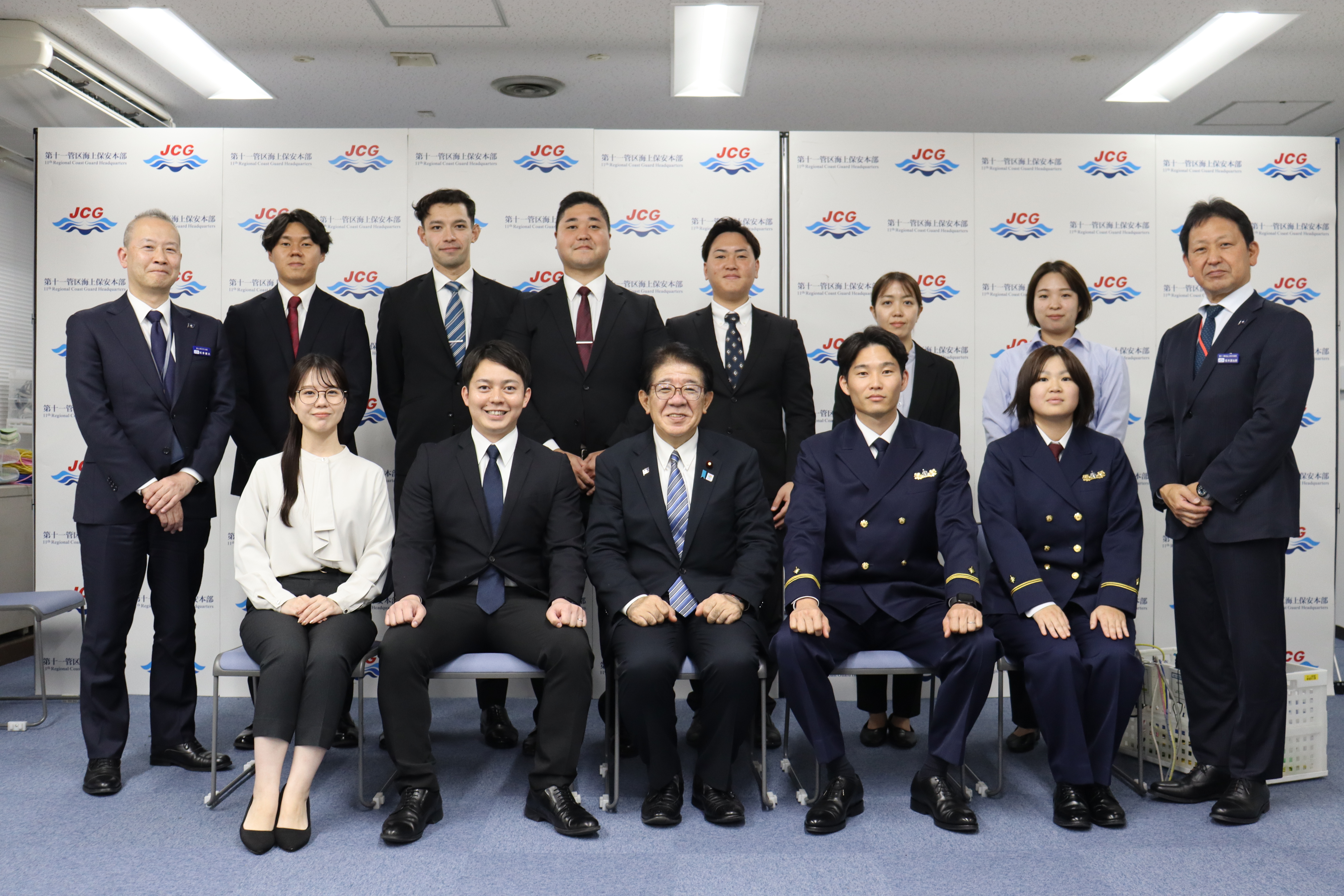 金子大臣は、職員に対し「沖縄の美しく豊かな海が第十一管区職員の日々の献身によって守られているのだということを改めて実感した。」、「海洋国家である日本の砦として、人知れず任務に精励するプロフェッショナルである諸君は我が国の誇りである。」旨激励しました。