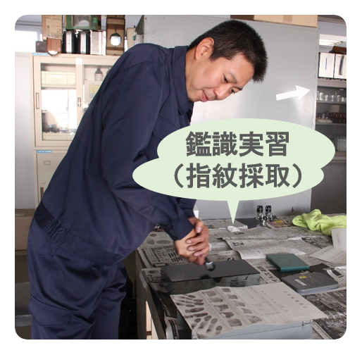 指紋を採取する器具の取り扱いや技術を修得します。