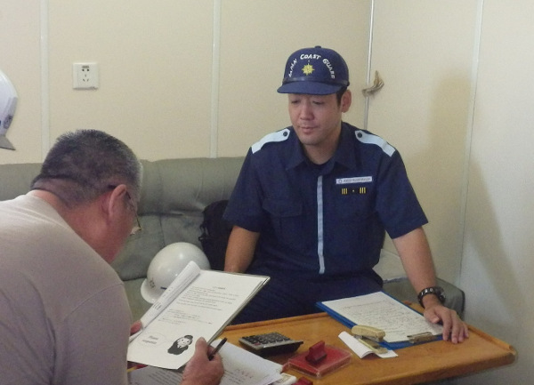 現在は、名古屋海上保安部三河海上保安署で国際取締官を拝命しており、主に外国船舶が日本の領海に入域する際に提出しなければならない船舶保安情報の受付や税関や警察等と合同で行う外国船舶への立入検査等を行なっております。