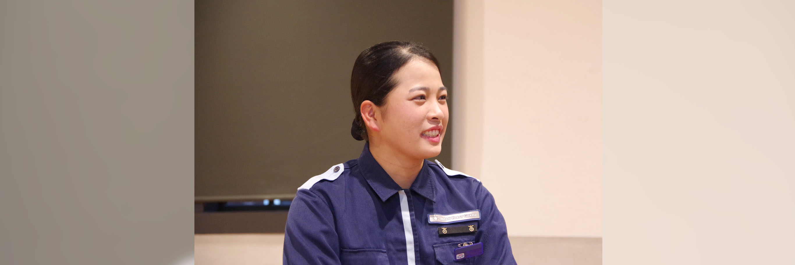 幼い頃から公安職に興味があり、小学生の頃、所属していたスイミングクラブが開催する遠泳大会に参加していたところ、近くまで海上保安庁の巡視船が来て応援メッセージを送ってくれました。そこで海上保安官という職業を知り、白く輝いた巡視船に乗り制服を着た「海の警察」に憧れを抱き、受験を決意しました。