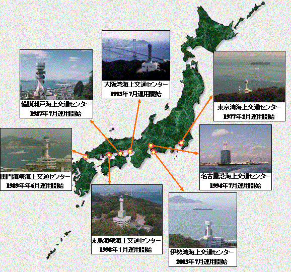 海上交通センターは、船舶の安全運行に必要な情報の提供と航行管制を一元的に行うことにより、ふくそう海域における海上交通の安全を図っています。現在、海上交通センターは、東京湾、伊勢湾、名古屋港、大阪湾、備讃瀬戸、来島海峡及び関門海峡の7箇所に設置されており、航路の航行制限状況、海難等の状況、巨大船の航路入港予定、船舶の動向、気象・海象等の他、定められた情報の提供を実施するとともに、航路通報の受理及び視界不良時の航路航行制限の指示等管制業務を行っています。
